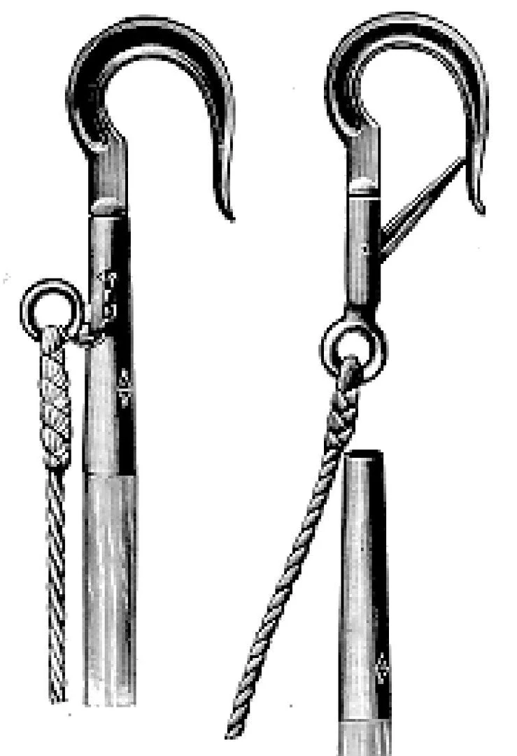 Aluminium bronze boathook for attaching a line to a mooring buoy or ring.