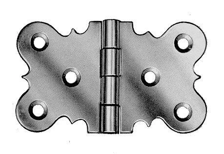 Pressed brass hinge with brass pin and polished finish.