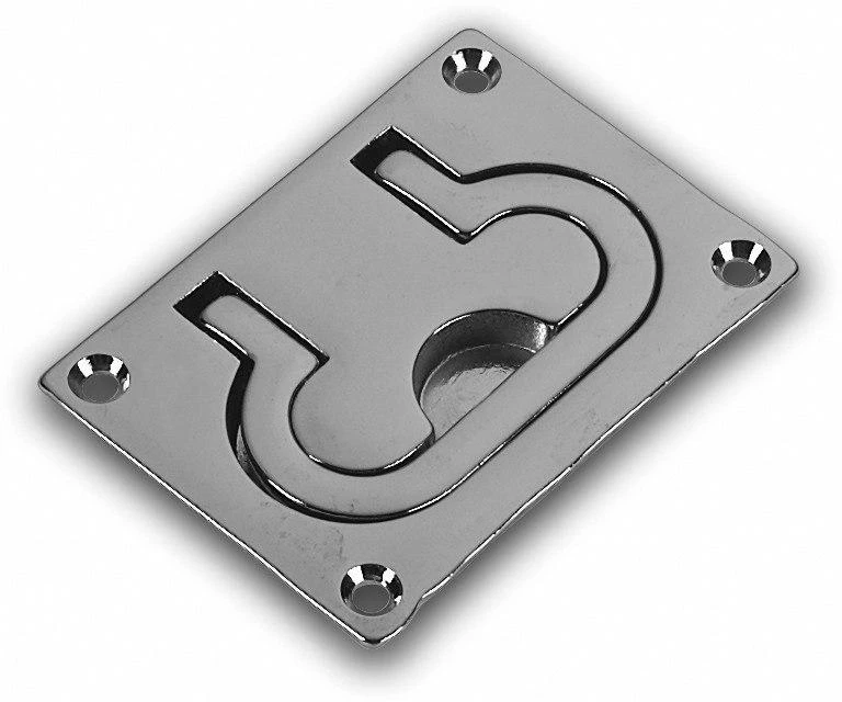 Polished brass fitting with a flush ring. The larger ring enables two or more fingers to be used for heavier hatches.