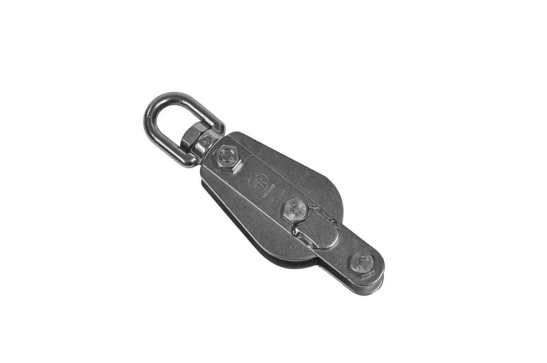 An extremely robust range of stainless steel blocks with brass bushed tufnol type sheaves.