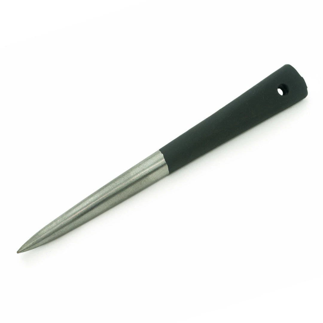 These pencil tip marlinspikes are a key tool in marine rigging and splicing. Each of the various lengths taper to a pencil point, and feature a black grip and hole.