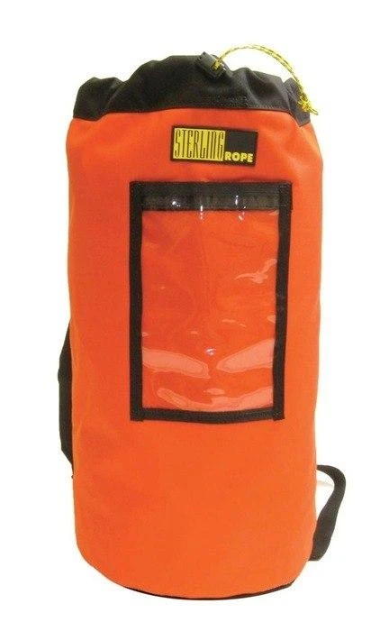 Sterling’s rescue rope bags are available in three sizes and feature padded backpack straps for easy hauling, a clear front pocket to store a rope log, and a rope cinch closure.